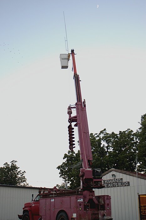 This is Nathan's new Yaesu FT-857D being used on 6m with the J-Pole atop the boom truck