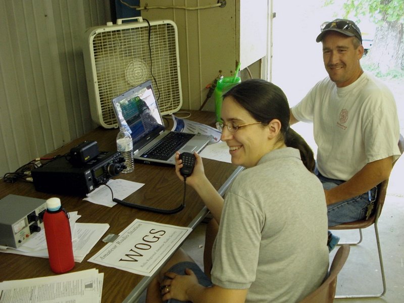 Paige Brueschke operating the 6m SSB station while Joe (K0OG) logs contacts for her.
