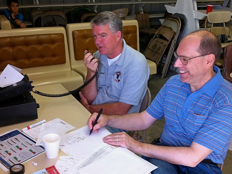 Jeff (KD0JLM) looking on while Stephanie (KC0RBS) works the digital station.