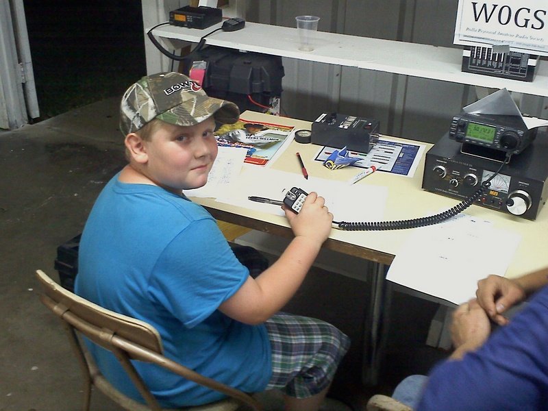 Dave (KC0AES) overlooking the 6m SSB station while Paige Brueschke works the microphone and Joe (K0OG) logs.